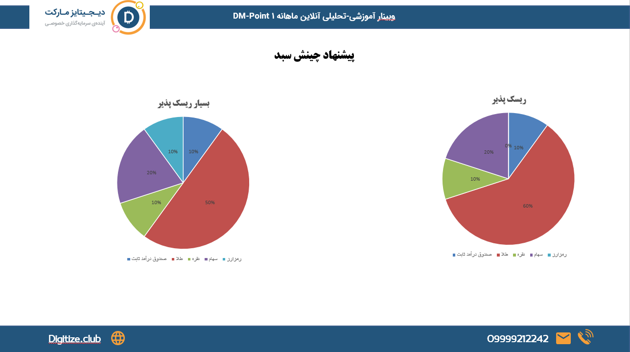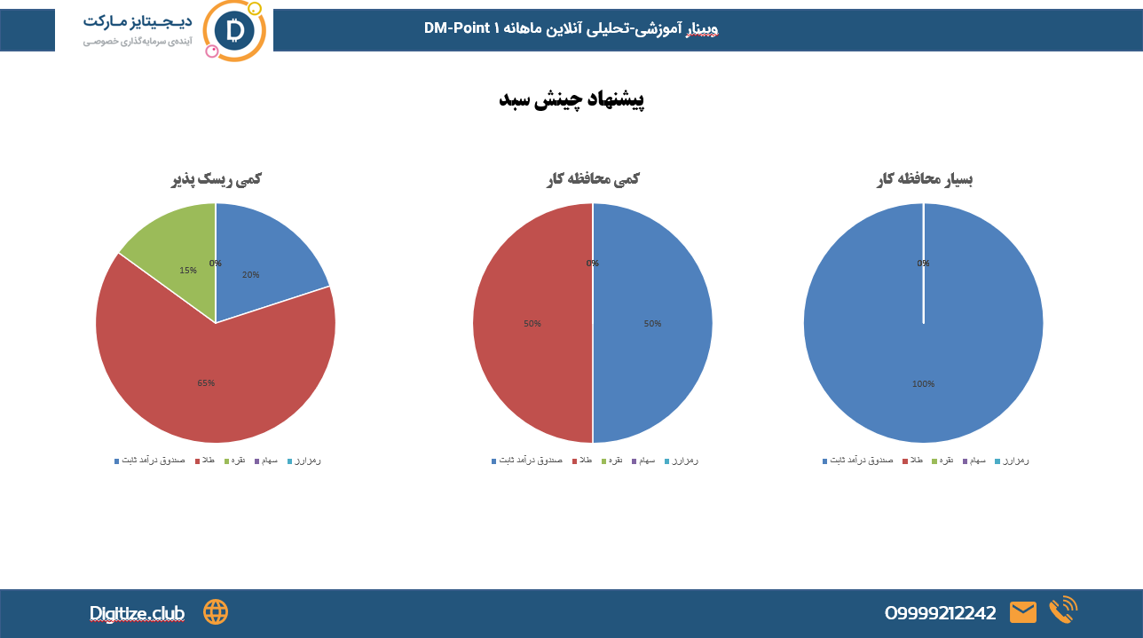 در بخش پایانی سخنانش، دکتر نامنی به مهمترین بخش ارائه پرداخت: پیشنهاد چینش پرتفوی در سناریوهای مختلف ریسکپذیری.