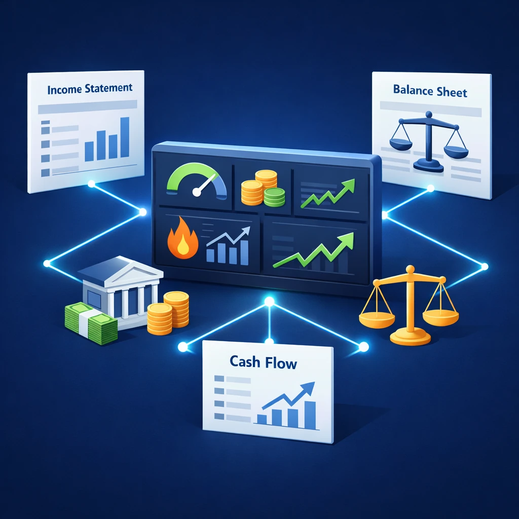 این قسمت، قلب تپنده مدل شماست؛ جایی که داستان کسبوکار شما در قالب سود، نقدینگی و داراییها روایت میشود.