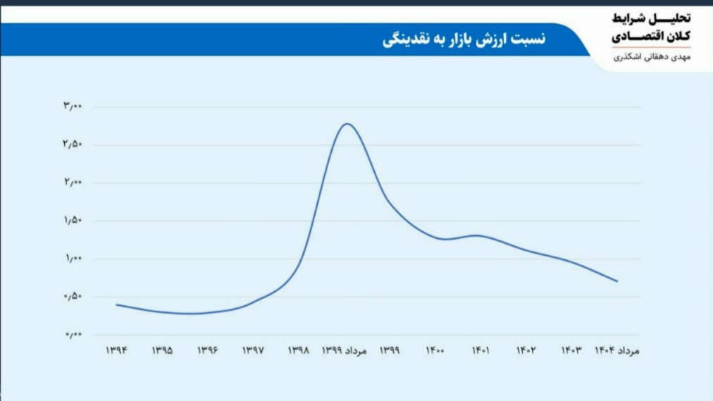 او شاخص «نسبت ارزش بازار سرمایه به نقدینگی کل کشور» را یکی از مهمترین معیارهای تحلیل دانست و گفت وقتی این نسبت در سالهای ۹۸ و ۹۹ به بالای دو و نیم برابر رسیده بود، بازار در وضعیت حبابی قرار داشت، اما اکنون که این عدد به زیر یک رسیده، بهوضوح نشان میدهد که بازار سرمایه از منظر کلان، در محدودهای جذابتر نسبت به گذشته قرار دارد. از نگاه او، این به معنای نبود ریسک نیست، بلکه به معنای وجود فرصت در دل یک اقتصاد تورمی است